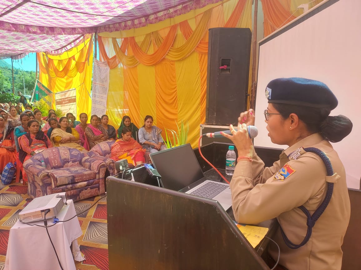 उत्तरकाशी। समाज में नशे के दुष्प्रभाव, साइबर व महिला अपराध तथा अन्य सामाजिक कुरीतियों के प्रति जनजागरुकता बढाने के उद्देश्य से पुलिस अधीक्षक उत्तरकाशी के निर्देशन में उत्तरकाशी पुलिस द्वारा चलाये जा रहे जनजागरुकता अभियान के अन्तर्गत प्रभारी निरीक्षक धरासू के नेतृत्व में थाना धरासू पुलिस की टीम द्वारा षनिवार को कृषि विज्ञान केंद्र, चिन्यालीसौड़ में आयोजित किसान सम्मेलन में उपस्थित जनसमूह को नशे के दुष्प्रभाव, साइबर, महिला संबंधी अपराध व यातायात नियमों के प्रति जागरूक किया गया। महिला उपनिरीक्षक शशि राणा एवं तस्लीम आरिफ द्वारा लोगों को साइबर अपराध, साइबर सुरक्षा के उपाय और ऑनलाइन सुरक्षा के बारे में जानकारी देते हुये साईबर हेल्पलाईन नम्बर 1930 की उपयोगिता बतायी गयी। नशे के कुप्रभाव के प्रति सजग करते हुये सभी को नशे से दूरी बनाने, स्वस्थ जीवनशैली के लिये प्रेरित किया गया। यातायात नियम व सड़क सुरक्षा के उपाय की जानकारी देने के साथ महिला अपराध व महिला सुरक्षा तथा डायल 112 व उत्तराखण्ड पुलिस एप्प की जानकारी भी दी गई।