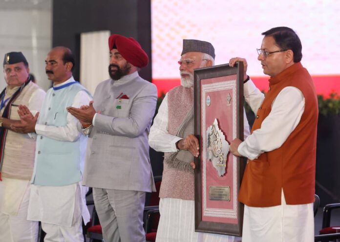 देहरादून। उत्तराखण्ड राज्य स्थापना के रजत जयंती उत्सव के मुख्य समारोह में आज देहरादून पहुंचे प्रधानमंत्री नरेंद्र मोदी जी ने लगभग आठ हजार करोड़ की विकास परियोजनाओं का शिलान्यास और लोकार्पण किया। उन्होंने उत्तराखण्ड की गत 25 वर्षों की उपलब्धियों की सराहना करते हुए, अगले 25 वर्षो के लिए रोडमैप के साथ आगे बढ़ने हेतु प्रेरित किया। एफआरआई परिसर में आयोजित समारोह में प्रधानमंत्री ने गढ़वाली व कुमांऊनी में प्रदेशवासियों को राज्य स्थापना दिवस की बधाई देते हुए कहा कि नौ नवंबर का दिन उत्तराखण्डवासियों की लंबी तपस्या का फल है। ये दिन प्रत्येक उत्तराखण्डवासी को गर्व का अहसास कराता है। प्रधानमंत्री ने राज्य आंदोलन के शहीदों को श्रद्धांजलि देने के साथ ही, सभी आंदोलनकारियों को भी नमन किया।